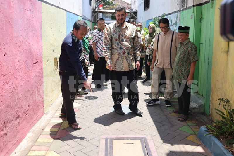 PAVING 3D: Wali Kota Hadi Zainal Abidin saat meninjau Gang Dalang sebagai salah satu titik pemasangan paving 3 dimensi.