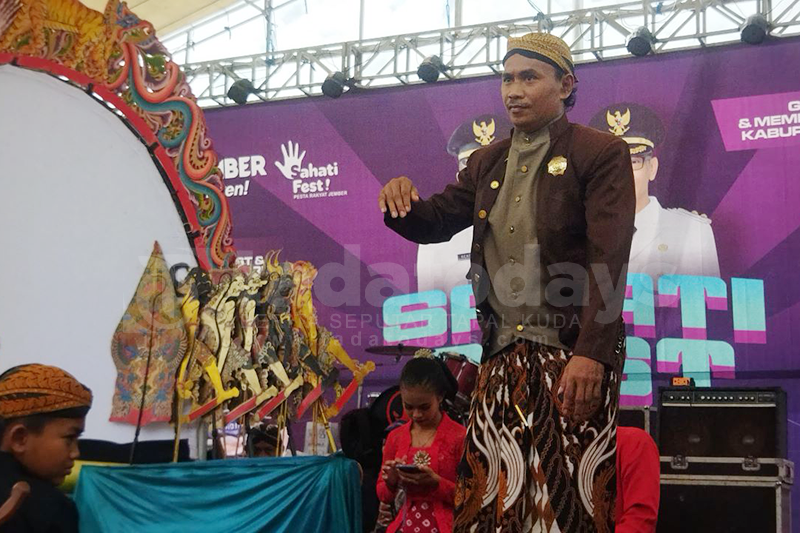 Pemerintah Kabupaten Jember menggelar pesta rakyat Sahati Fest di Alun-alun Jember yang berlangsung selama 10 hari sejak Jumat (23/12/2022). Dalam pembukaan pesta rakyat tersebut, terdapat sejumlah kegiatan. Satu di antaranya diisi oleh pagelaran wayang kulit oleh anak-anak muda dari Sanggar Sasono Budoyo.