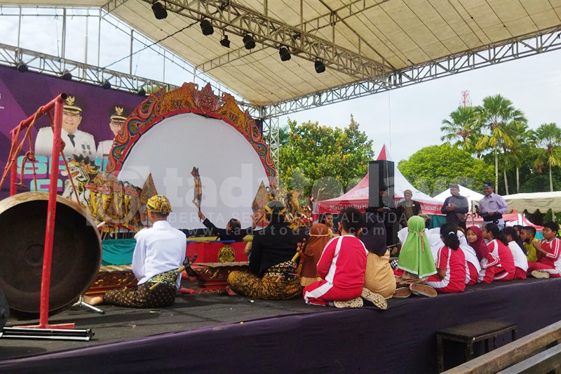 CILIK: Salah seorang dalang cilik sedang mendalang di Sahati Fest.