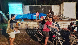 SUTRADARA: Abi saat menyutradarai warga lokal di panggung terbuka Fakultas Ilmu Budaya (FIB) Unej.