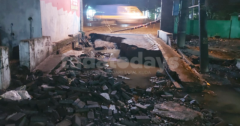AMBROL: Jalan ambrol dampak banjir di Pasuruan.