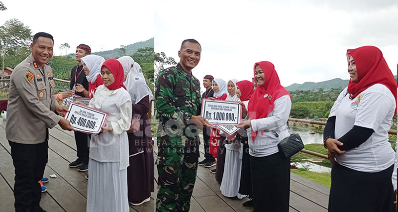 REWARD: Kapolres Probolinggo Kota AKBP Wadi Sa'bani dan Komandan Kodim 0820 Probolinggo Letkol Arh. Arip Budi Cahyono turut serta menyerahkan hadiah kepada para pemenang Festival Wisata Kuliner Buah dan Sayur.