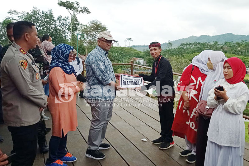 HADIAH: Wabup Probolinggo HA Timbul Prihanjoko secara simbolis menyerahkan hadiah uang pembinaan kepada perwakilan Desa Bremi yang meraih juara umum pada Festival Wisata Kuliner Buah dan Sayur.