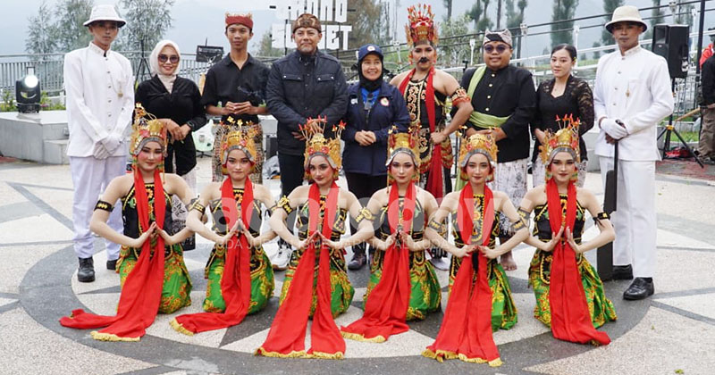 BROMO SUNSET: Bupati Probolinggo Gus dr. Moh. Haris bersama Ketua Pengarah RLF dan IYLA, Dr. Sjahriati Rochman berfoto bersama para talent Bromo Sunset Music and Culture.