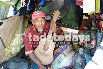 “Saya itu suka musik, sudah masuk dalam jiwa saya. Kalau saya ngamen itu pasti orang langsung kenal. Saya membawanya (lagu, red) dengan sepenuh jiwa,” tuturnya sembari duduk di gubuknya.