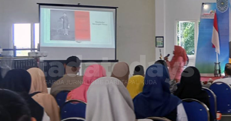 MATERI: Pemateri dari SMKN 3 Probolinggo menyampaikan materi sejarah perkembangan busana pendhalungan pada sosialisasi busana pendalungan.