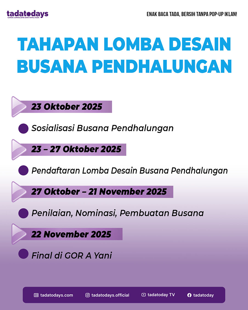 “Kemudian tanggal 22 November 2025 difinalkan dan ditampilkan di GOR Ahmad Yani untuk meramaikan UMKM atau sentra kuliner di GOR Ahmad Yani. Mungkin bapak ibu yang belum ke sana (Sentra Kuliner GOR A Yani, red) nanti bisa berkunjung ke sana, membawa semua keluarganya dan bisa mengikuti final lomba desain,” katanya.