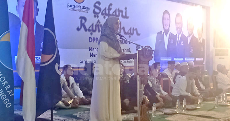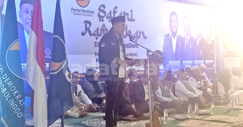 SAFARI RAMADAN: Wakil Ketua DPP Partai NasDem, Saan Mustopa saat sambutan pada Safari Ramadan di Pondok Hati Probolinggo.