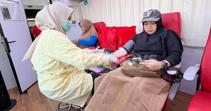 DONOR: Gandeng PMI Kota Probolinggo, Hari Guru Nasional dan HUT KORPRI juga diselingi aksi sosial dengan donor darah.