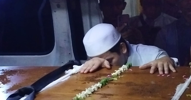 Beberapa saat setelah tiba, warga langsung menggelar tahlil lalu menyalati jenazah di masjid, setelah itu dikuburkan.