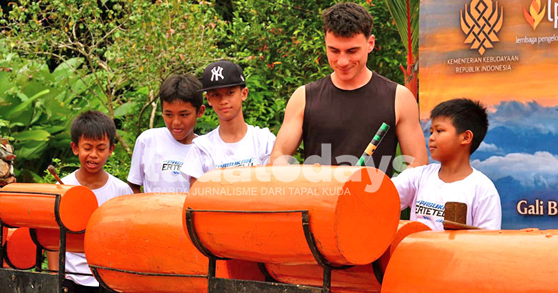 PATROL: Wisatawan asal jerman yang ikut menabuh musik patrol bersama anak-anak binaan YANABI.