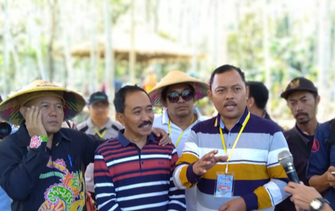 POTENSI : Asisten Administrasi Perekonomian dan Pembangunan, Kabupaten Probolinggo, Sidik Widjanarko bersama Wakil Ketua DPRD Wahid Nurrahman saat panen raya pada Festival Petik Merah Kopi Krucil, Sabtu (29/06).