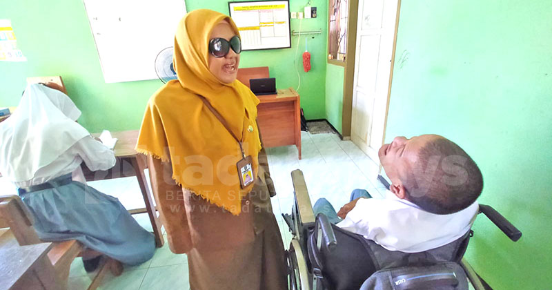 Senin (1/9/2025) jurnalis tadatodays.com ganti mengikuti Fitri mengajar di SLBN 2 Kota Pasuruan. Jurnalis tadatodays.com dipersilahkan masuk kelas. Ada lima murid di dalam kelas itu. Empat dari mereka adalah disabilitas daksa dan satu lagi sepertinya murid dengan down syndrome.