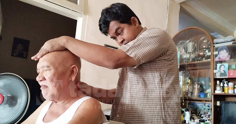 Proses terapi pun dimulai. Tangan Basir cekatan menerapi pasiennya. Ia tampak tahu betul harus menyentuh, menggerakkan, dan memulihkan titik mana saja. Mulai kepala hingga kaki. Sembari menerapi, ia mengajak Andi ngobrol.