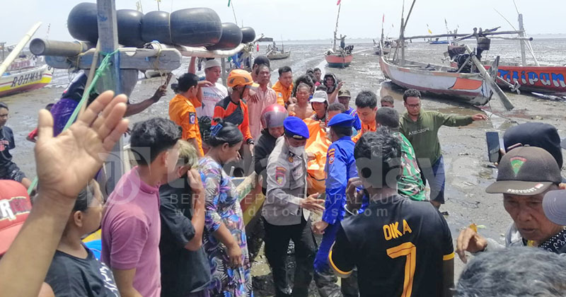 EVAKUASI: Jasad nelayan Pasuruan korban perahu terbalik di perairan Sidoarjo dievakuasi.