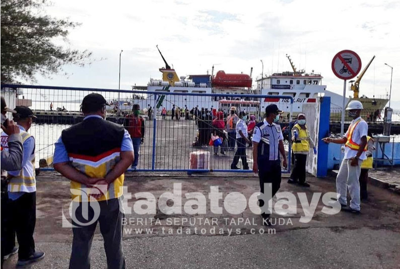 BANYUWANGI, TADATODAYS.COM - Selasa (19/5/2020) pagi pelabuhan Tanjung Wangi kedatangan kapal KM Sanus 92 membawa 42 penumpang. 37orang di antaranya tidak dapat memenuhi kelengkapan administrasi sehingga tim gabungan melaksanakan prosedur untuk pencegahan covid. Yaitu dengan membawa penumpang tersebut menjalani pemeriksaan dan prosedur isolasi lebih lanjut di GOR Tawangalun.