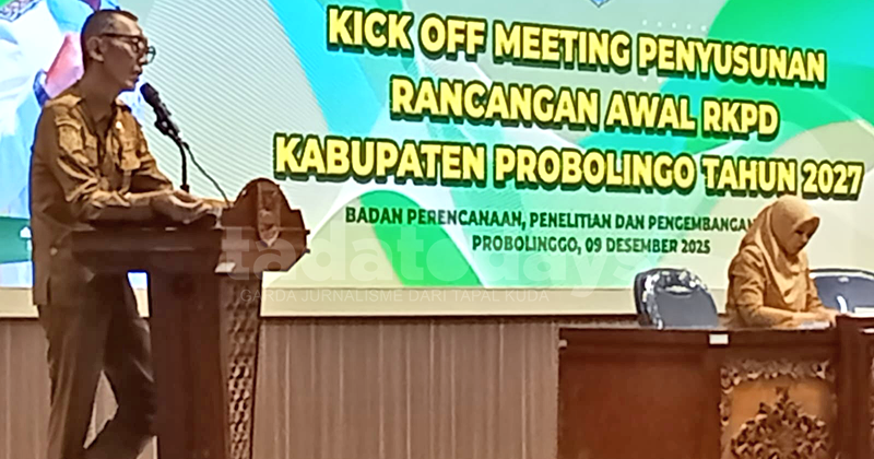 KRAKSAAN, TADATODAYS.COM - Pemerintah Kabupaten Probolinggo melalui Badan Perencanaan, Penelitian, dan Pengembangan Daerah (Bapelitbangda) menggelar Kick Off Meeting Penyusunan Rancangan Awal RKPD (Rencana Kerja Pemerintah Daerah) Kabupaten Probolinggo Tahun 2027, Selasa (9/12/2025). Kegiatan tersebut dilangsungkan di Ruang Pertemuan Madakaripura, Lantai 5 Kantor Bupati Probolinggo di Kraksaan.