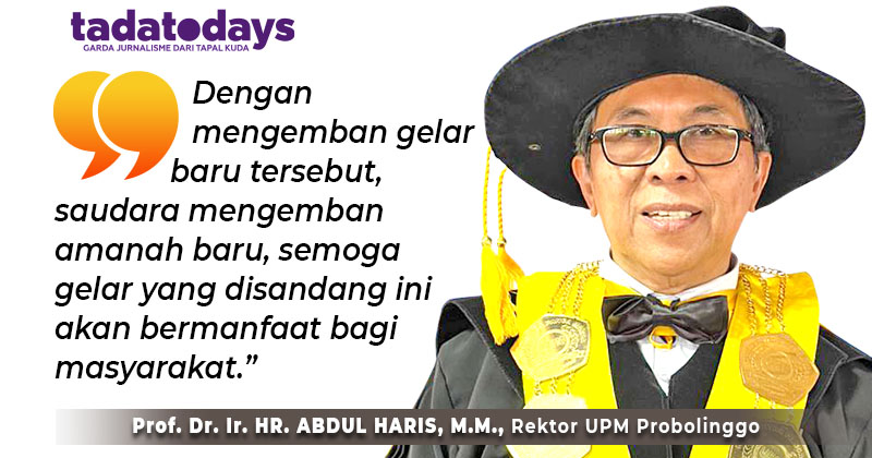 “Bahwa Universitas Panca Marga sudah memiliki program pasca sarjana. Jadi, bagi yang sudah lulus dan akan melanjutkan program S2 kami sangat terbuka. Dengan mengemban gelar baru tersebut, saudara mengemban amanah baru, semoga gelar yang disandang ini akan bermanfaat bagi masyarakat,” kata Rektor Prof Haris.