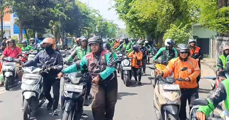 AKSI: Ojol di Pasuruan menggelar aksi imbas motor brebet, mereka menuntut ganti rugi.
