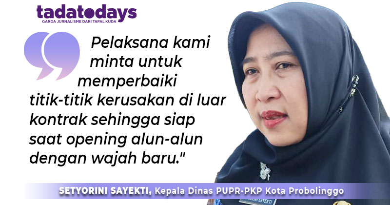 Hal ini disampaikan oleh Kepala Dinas Pekerjaam Umum, Penataan Ruang, Perumahan dan Kawasan Permukiman (PUPR-PKP) Kota Probolinggo Setyorini Sayekti. Setelah selesai pengerjaannya per akhir Desember 2025, masih ada proses pembersihan. "Sekaligus persiapan opening Alun-Alun Kota Probolinggo dengan wajah baru," katanya melalui pesan singkat, Senin (5/1/2026) siang.
