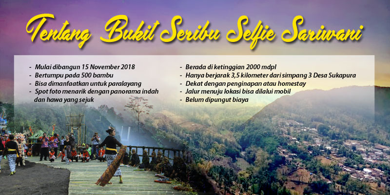 Sementara itu, nama Bukit Seribu Selfie diambil karena Desa Sariwani memiliki banyak tempat dan bukit untuk selfie. Tak terhitung jumlahnya. Di antaranya, Lembah Bedor, Bukit Ilalang, dan banyak lagi. “Dulu pernah diundang Dinas PU Cipta Karya. Ternyata ada banyak bukit di Desa Sariwani. Dan saking banyaknya akhirnya kami ambil nama bukit seribu selfie,” jelasnya. (mm/sp)