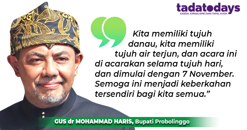 “Saya ingin menunjukkan kepada khalayak masyarakat, khususnya Kabupaten Probolinggo, ini harus tahu bahwa betapa kita itu kaya dengan alam. Kita punya tujuh danau. Kita punya tujuh air terjun. Tujuh danau ini hanya ada di satu kecamatan yaitu Tiris. Saya ingin tanya, di mana di belahan dunia ini di satu Kecamatan itu punya tujuh danau. Yang ada hanya di Probolinggo. Itulah karenanya kita harus bangga dengan alam kita yang pertama kita merayakan alam,” tuturnya.