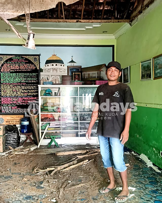 -Bagian ruang tengah Ponpes Al-Kautsar Internit di Dusun Sumbersari, Desa Kemuningsari Lor, Kecamatan Panti mengalami kerusakan.