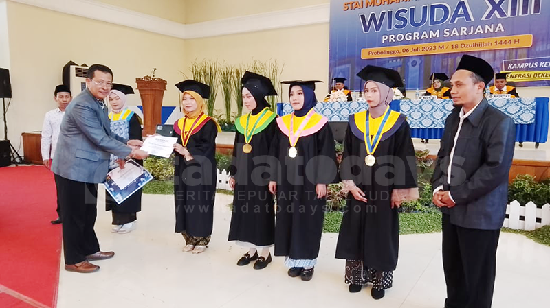 PROBOLINGGO, TADATODAYS.COM - Sekolah Tinggi Ilmu Agama Islam (STAI) Muhammadiyah Probolinggo menggelar Wisuda XIII program sarjana Tahun 2023. Sejumlah 116 mahasiswa diwisuda. Momen istimewa tersebut diselenggarakan di Ballroom, Paseban Sena, Jl Suroyo Kota Probolinggo, Kamis (6/7/2023).